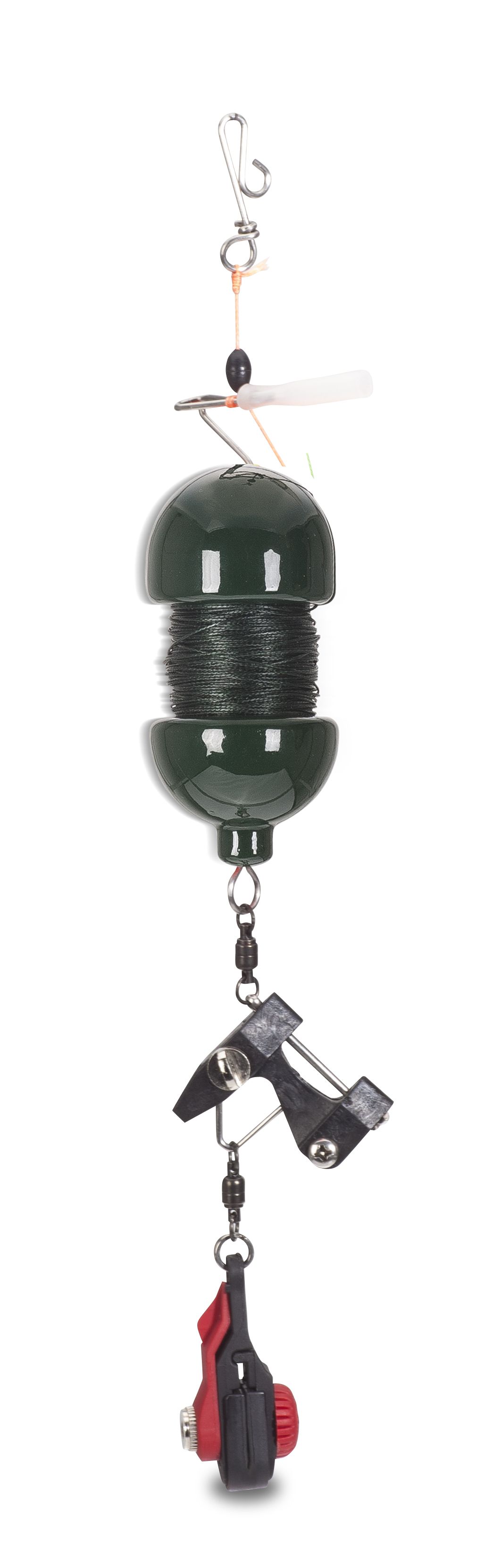 Tento set obsahuje všechny komponenty, které jsou nezbytné pro kotvení sestavy ke stromu nebo bóji. Rameno je na zadním konci připevněno ke stromu, větvi nebo jinému vhodnému předmětu na zadním konci pomocí spony z nerezové oceli. Odtud se požadovaná délka šňůry o síle 0,60 mm odvíjí a potom se může upevnit v drátěné svorce. Potom upevněte šňůru na hlavní ose sestavy. (viz obrázek). Uvolňovací síla na příložné svorce výložníku může být nastavena v rozmezí přibližně 2 - 10 kg. To umožňuje přizpůsobit se každé situaci, jako je průtok a velikost nástrahy... rychlé a nekomplikované, výložník má velmi nízkou váhu, což je nutné k montáži do obtížných podmínek (překážky, zeleň nebo lodě). Systémy jsou k dispozici ve třech různých barvách (červená, zelená a tmavě zelená). Povrch je tvořen z nového vysoce kvalitního plastu, který zaručuje dlouhou životnost. Po rybaření lze šňůru snadno navinout zpět na výložník a můžete se přesunout na nové místo. dodává se bez chemického světla průměr šňůry: 0,60 mm délka kabelu: 20 m rychlá a snadná instalace nastavitelná vypínací síla barva tmavě zelená ...