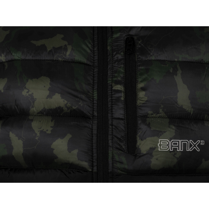 Zateplená vesta přinášející skvělý tepelný komfort během chladných, podzimních či zimních dní. Je vyrobena z tkaniny, která je příjemná na dotek a zároveň snadno udržovatelná, což je velmi praktické při použití během rybolovu a jiných outdoorových aktivitách. Vesta je zároveň příčně prošívaná, což vytváří stylový vizuální prvek produktu. Výplň vesty je extra lehká a zajišťuje výborné termoizolační vlastnosti. Zapínání je zajištěno pomocí kvalitního zipu, překrytého z vnější strany tkaninou, což zvyšuje jeho odolnost vůči vnějším podmínkám. Na obou stranách se nacházejí dostatečně velké kapsy na ruce nebo pro odložení potřebného příslušenství. Vesta Banx disponuje také vyvýšeným límcem pro lepší překrytí krku a šíje při nízkých teplotách vzduchu. Design se skládá z černé barvy, kterou stylově doplňuje naše patentovaná kamufláž BANX. Díky této kombinaci ji můžete využít nejen při rybolovu, ale také k běžnému nošení. Podle přiložené velikostní tabulky si prosím zkontrolujte vyhovující velikost. Materiálové složení: 100% Polyester Pojem BANX vyjadřuje patentovanou kamufláž z dílny značky Delphin, která v sobě nese hluboký vzkaz. Jedinečné designové prvky, ze kterých je složená, jí dodávají nezaměnitelný charakter a dělají z ní více než jen vizuální vzor. Kamufláž BANX zobrazuje přesně to, co spojuje naši rybářskou vášeň napříč celou Evropou. Jsou to jezera, řeky či jiné vodní plochy. Od vod rumunského pobřeží, přes vodní nádrže na Slovensku až po ikonická jezera Evropy napříč Německem, Itálií až po úplný západ Evropy ve Španělsku. Právě siluety těchto jezer jsme spojili a vytvořili tak jedinečnou kamufláž s názvem BANX. Není to jen kamufláž - je to mapa. Mapa, která svým precizním designem zobrazuje ty nejznámější revíry Evropy, díky nimž bude vaše výbava vypadat maximálně jedinečně a originálně.