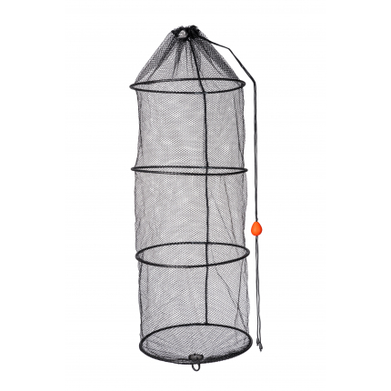 Osvědčené a velice populární vezírky klasické konstrukce s pružnými obručemi, kotvícím očkem ve spodní části a dostatečně dlouhou vrchní šňůrou, která je osazena plovákem z odolného materiálu. Vezírky jsou vyrobeny z velmi pevné a odolné síťky s obdélníkovými oky....
