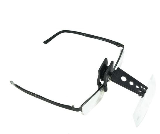 Lupu lze snadno připevnit na brýlovou čočku pomocí klipu.