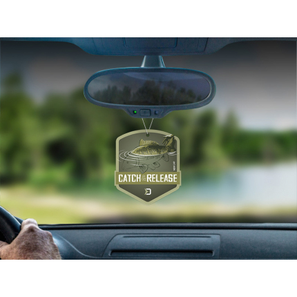 Chyť a pusť- cesta kterou se ubírá stále více rybářů. Právě pro ně je tu originální osvěžovač vzduchu CATCH and RELEASE s motivem kapra, jehož lovec pouští zpět do vody. Zavěšení na libovolné místo umožňuje elastická gumička.