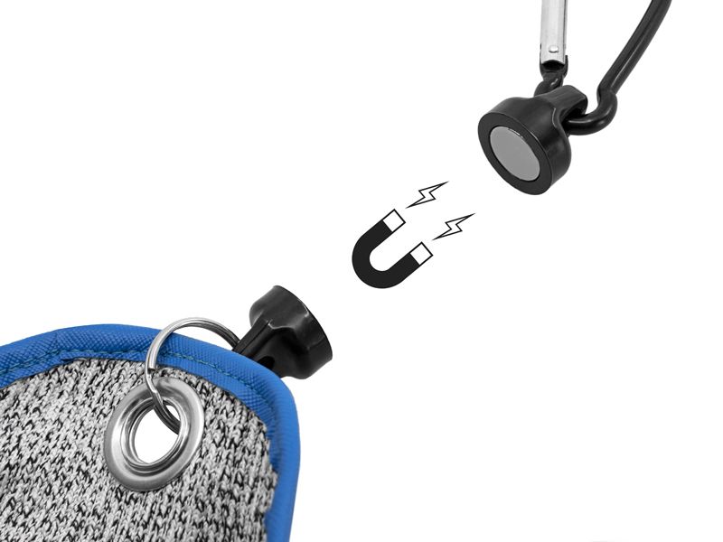 Rukavice je po celém povrchu pogumována silnou vrstvou, aby zamezila proniknutí i těch největších zubů sladkovodních dravců. Pro urychlení použití je rukavice vybavena magnetem, který je součástí balení. Jedna polovina magnetu se umístí na kalhoty nebo z boku tašky a druhá zůstává přímo na rukavici. Při použití stačí ruku navléci do rukavice, zatlačit směrem dolů a magnet se sám odepne. Balení obsahuje rukavici na pravou ruku!
