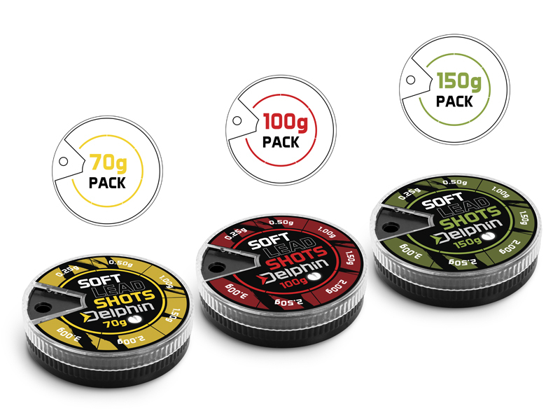 Vyvažovací olůvka vysoké kvality a bezvadného zpracování. Baleno v praktickém obalu s dávkovačem. V nabídce různé velikosti a gramáže. Vyvažovací olůvka Delphin SOFT (žlutá krabička) | 70g -žluté balení 70g | 0.10-1.25g obsahuje následující gramáže: 0.10g, 0.25g, 0.50g, 0.75g, 1.00g a 1.25g -žluté balení 70g | 0.10-2.00g obsahuje následující gramáže: 0.10g, 0.25g, 0.50g, 1.00g, 1.50g a 2.00g -žluté balení 70g | 0.25-3.00g obsahuje následující gramáže: 0.25g, 0.50g, 1.00g, 1.50g, 2.00g a 3.00g Vyvažovací olůvka Delphin SOFT (červená krabička) | 100g -červené balení 100g | 0.10-1.50g obsahuje následující gramáže: 0.10g, 0.25g, 0.50g, 0.75g, 1.00g, 1.25g a 1.50g -červené balení 100g | 0.10-2.50g obsahuje následující gramáže: 0.10g, 0.25g, 0.50g, 1.00g, 1.50g, 2.00g a 2.50g -červené balení 100g | 0.25-3.00g obsahuje následující gramáže: 0.25g, 0.50g, 1.00g, 1.50g, 2.00g, 2.50g a 3.00g Vyvažovací olůvka Delphin SOFT (zelená krabička) | 150g -zelené balení 150g | 0.10-1.50g obsahuje následující gramáže: 0.10g, 0.25g, 0.50g, 0.75g, 1.00g, 1.25g a 1.50g -zelené balení 150g | 0.10-2.50g obsahuje následující gramáže: 0.10g, 0.25g, 0.50g, 1.00g, 1.50g, 2.00g a 2.50g -zelené balení 150g | 0.25-3.00g obsahuje následující gramáže: 0.25g, 0.50g, 1.00g, 1.50g, 2.00g, 2.50g a 3.00g