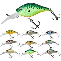 Wobler pro lov okounů nebo tloušťů. Zavalitý wobler se silnými vibracemi láká dravce z velké vzdálenosti. „D (Diving)“prodloužená lopatka pro hlubší ponor. Očko pod lopatkou pro přidání závaží. Díky přídavné zátěži dokážeme dostat i tento poměrně malý wobler do téměř libovolné hloubky. Dokážeme tak k dravcům v hluboké vodě dostat i nástrahu, kterou bychom tam za normálních okolností nedostali. Díky silně plovoucímu tělíčku a dlouhé lopatce se úspěšně vyhnete překážkám na dně. Některé barvy obsahují UV body. Délka 4,6 cm, váha 7,6 g, potápivost 1,8 m, plovoucí.