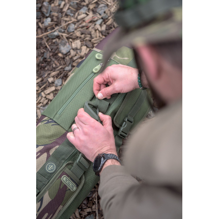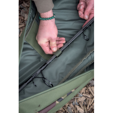 Pouzdro s volitelným nastavením vnitřního prostoru ušetří spoustu místa a zároveň přispívá ke správnému rozložení váhy pro snadnější nošení. Obsahuje polstrované přepážky a zesílenou polstrovanou základnou, která pomáhá chránit vaše pruty. Součástí jsou také externí kapsy pro možnost uložení nezbytně nutných věcí, jako jsou třeba návazce. Specifikace: - použitý materiál 1200D nylon - polstrované přepážky - externí kapsy na podběráky a přechovávací saky - externí kapsy pro vidličky - externí kapsy pro olova - včetně ramenního popruhy pro snadný přenos - polstrovaný base s voděodolného materiálu pro možnost lehkého přetření - robustní Bespoke zipy - rozměry: 1950 x 275 x 220 mm - barva: zelená