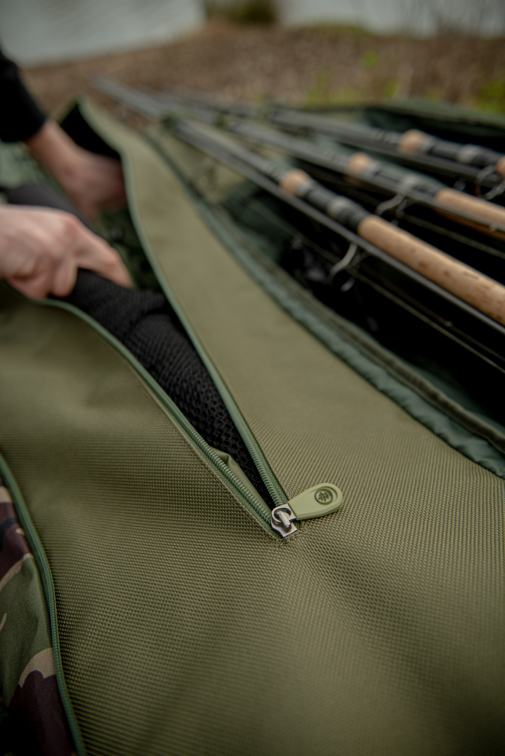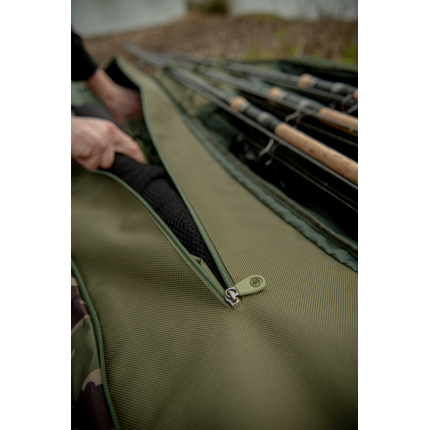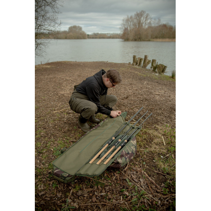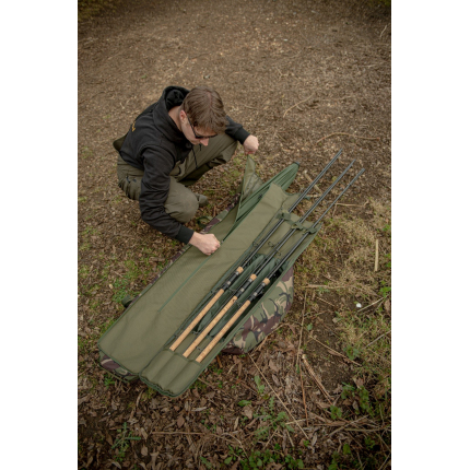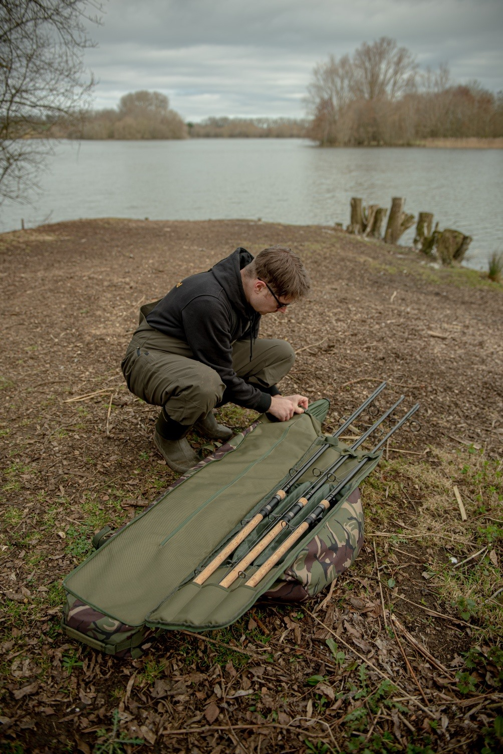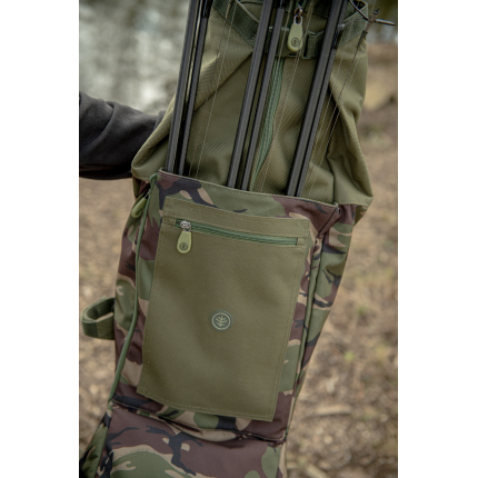 Nová řada zavazadel HD Tactical navržena pro rybáře, kteří upřednostňují kvalitu, odolnost a design. Na výrobu byl použit vysoce kvalitní odolný materiál Nylon 1200D. Pruty a deštník nejsou součástí produktu. Pouzdro na pruty Tactical HD Quiver Foldall bylo navrženo především pro uskladnění až tři plně osazených prutů. Díky designu Quiver je možné do něj napasovat pruty různých délek. Obsahuje také velkou kapsu pro vážící saky, popřípadě podběráky nebo deštník. Velmi pevný materiál Nylon 1200D zaručuje odolnost, design a dlouhou životnost. Lze ho také lehce očistit vlhkým hadříkem nebo ručníkem. Má komfortní popruh přes rameno, odolné zipy Bespoke a vrchní část pouzdra obsahuje Roll Top design, tedy přebytečnou vrchní část lze lehce srolovat a dopnout plastovými klipsnami pro maximální bezpečnost uzavření. Pouzdro má také vnější kapsu se zipem na olova, zátěže apod. Specifikace: - použitý materiál Nylon 1200D - komfortní popruh pře rameno - polstrované kapsy na navijáky - vnitřní kapsa ze síťoviny - Roll Top design pro konkrétní nastavení požadované délky - velká komora na zipy - externí kapsa se zipem na olova a zátěže - barva: kombinace zelené a camo - rozměry: 1450 mm (délka) x 260 mm (šířka) x 300 mm (hloubka)