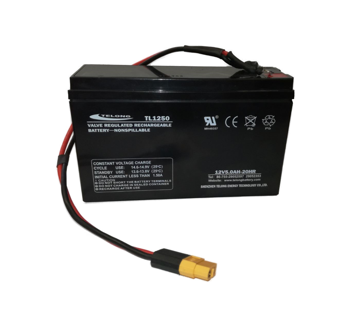 Dvě olověné baterie (2 x 5Ah). Tyto baterie lze dobíjet bez vyjmutí pomocí dodávaného adaptéru nebo vyjmuté pomocí redukce. Při plném vytížení v nejnepříznivějších podmínkách vydrží baterie déle jak 150 min. V běžných podmínkách v závislosti na zátěži pak mnohem déle.