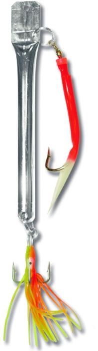 Cenově výhodný a současně k tomu i bezolovnatý pilkr, kte - rý se z výroby dodává s namon - tovaným gummimakkem. S chobotničkou přetaženou přes trojháček. Enormně úspěš - ná nástraha.