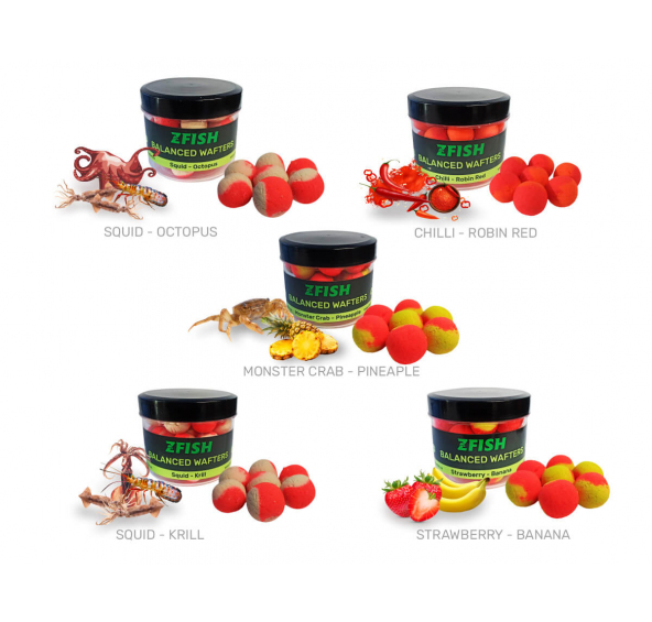 Nejpoužívanější a nejúčinnější kombinace boilies pro lov trofejních kaprů. Balanced Wafters je narozdíl od běžných boilies odlehčeno a kapr tyto nástrahy daleko lépe přijímá a nasává. Nejúčinnější montáž pro tyto nástrahy, je tzv. “na panáčka” kdy samotný háček leží přímo na dně a nástraha se lehce vznáší a balancuje nad ním. Pokud se Vám bude zdát, že nástraha příliš plave, stačí jí lehce zatížit vhodným bročkem.