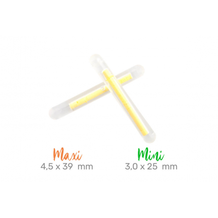 Tyto malé světelné tyčinky lze vkládat do různých indikátorů, splávků, nebo je pomocí úchytů a klipů lze snadno připevnit přímo na špičky Vašich prutů. Aktivace se jednoduše provádí zlomením střední “světelné” části tyčinky a pro lepší rozlití svítící tekutiny, doporučujeme tyčinku důkladně protřepat. Vylepšená technologie chemické směsi zajistí dobu svícení až 12 hodin.