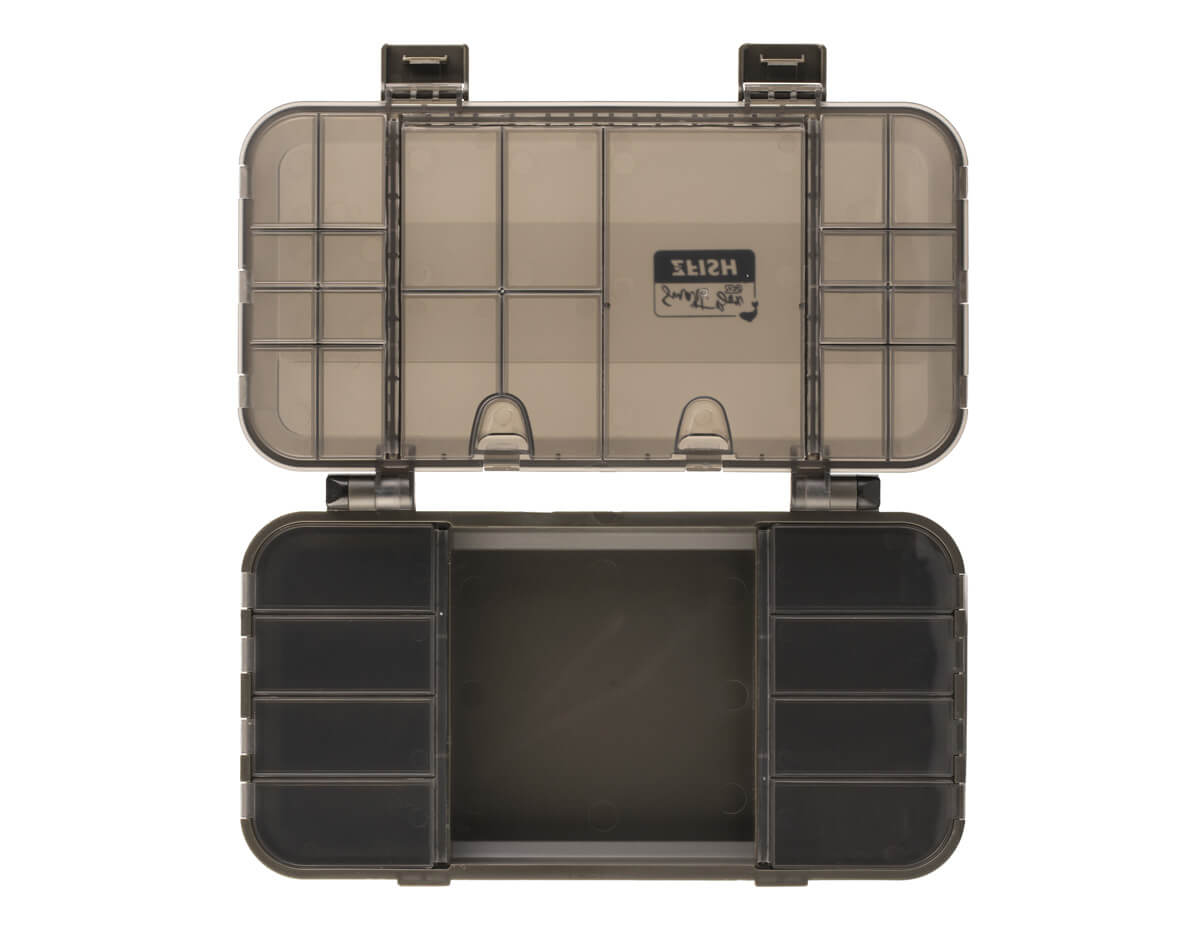 Celý popisZFISH Smart Box ZFS je praktický a univerzální tackle box od české značky ZFISH. Tento organizér je upravenou, mělkou verzí Smart boxu ZFX. Rozdíl spočívá pouze ve spodní části, která není tak hluboká (pouze 4,5 cm) a disponuje 9-ti pevnými přihrádkami, z nichž prostřední je otevřená a 8 bočních je stejně provedených a uzavíratelných jako ve víku. Bezpečné uzavírání, nebo nechtěné otevření zajišťují dva zavírací klipy a velice pevné panty, které dokonce dokážou udržet box otevřený a usnadní Vám práci. Samotné víko boxu také funguje jako organizér a disponuje 21-ti menšími samostatně uzavíratelnými přihrádkami s čirými krytem, takže snadno a ihned vidíte kam a pro co sáhnout. Jednoduchý a čistý design se zkosenými a oblými hranami nejen skvěle vypadá, ale díky oblým tvarům je i samotná manipulace mnohem příjemnější. Výborný dojem už jen podtrhují odolné materiály a komponenty ve velmi elegantním, temně olivově zeleném provedení. Díky svým rozměrům se jedná o kompaktní box vhodný na kratší kaprařské nebo feeder vycházky do menších batohů.