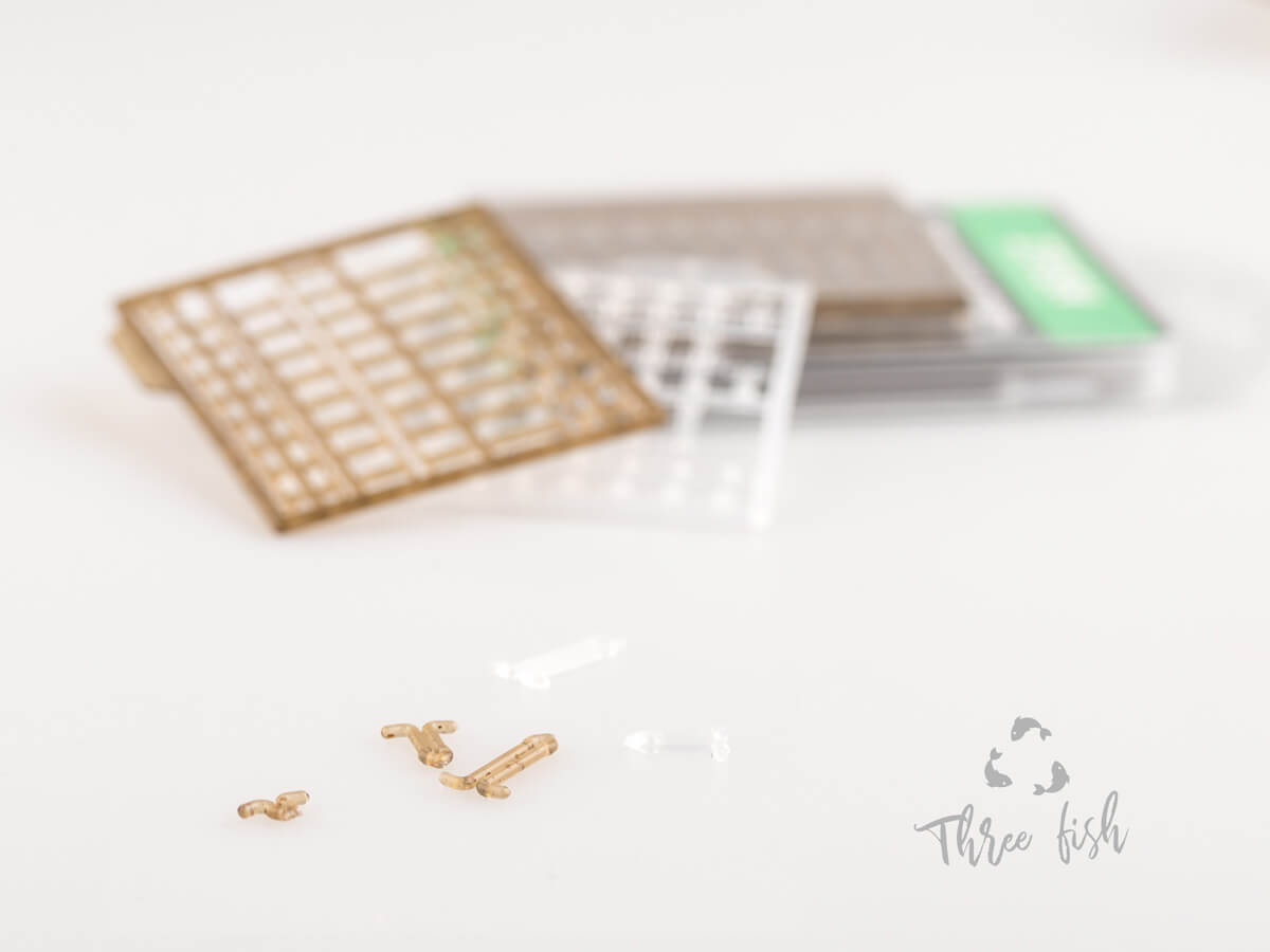 Balení obsahuje dvě sady zarážek: Jednu čirou a druhou transparentní hnědou pro dokonalé přizpůsobení nástraze.