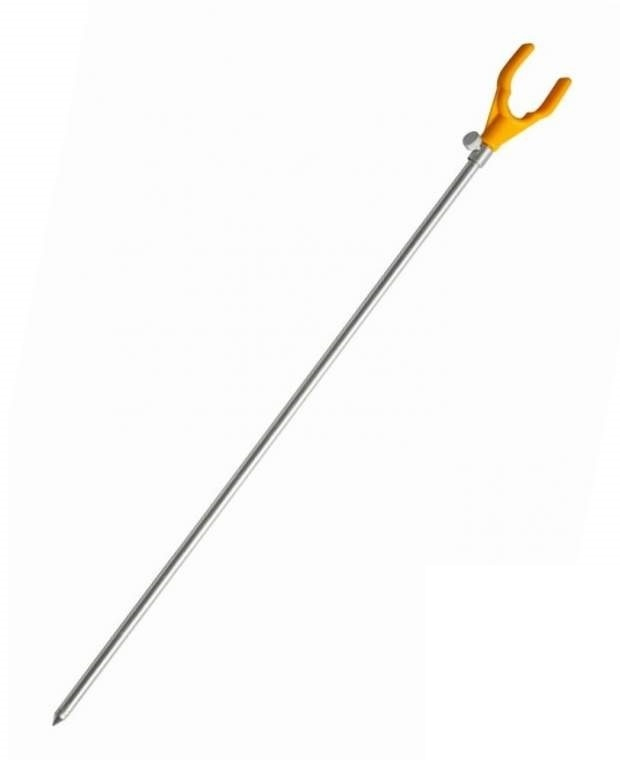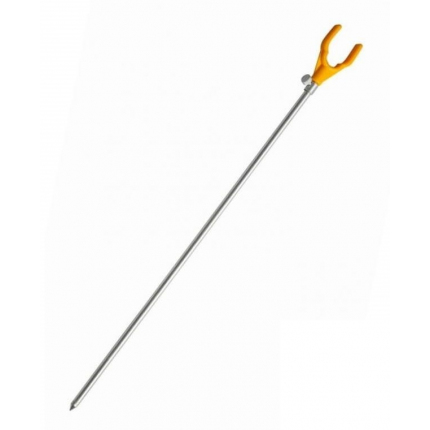 Pevná teleskopická vidlička vyrobená z kombinace hliníku a oceli se vsazeným ostrým hrotem pro snadné zapíchnutí i do tvrdšího povrchu. Vidlička má zakončení ve tvaru U pro pohodlné odložení prutu i s větším průměrem rukojeti.