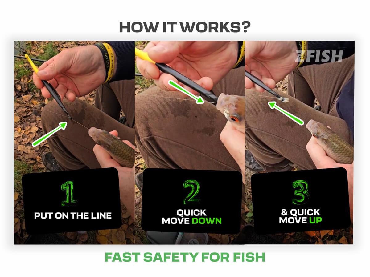 - Umožňuje šetrné a rychlé vyproštění háčku