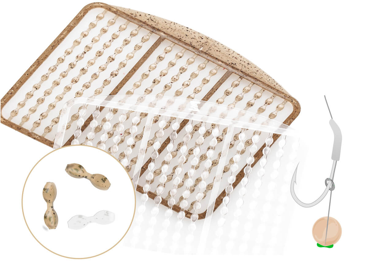 Balení obsahuje dvě sady zarážek: Jednu čirou a druhou transparentní hnědou pro dokonalé přizpůsobení nástraze.