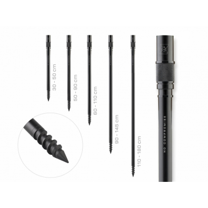 Díky závitovému (vrtacímu) hrotu lze vidličku snadno a pevně ukotvit i v tvrdé nebo kamenité půdě – bez nutnosti použití velké síly či nářadí. Výškově nastavitelná konstrukce umožňuje přesné nastavení prutu podle terénu i aktuálních podmínek lovu.