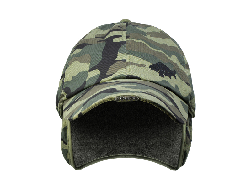 Je vyrobena z pevného a odolného materiálu v nenápadném Camo vzoru, který perfektně splývá s okolní přírodou. Regulování je provedeno ze šňůrky s posuvným klipem, díky čemuž si můžete nastavit velikost přesně podle svých potřeb. Vnitřní strana je vystlaná teplou fleecovou podšívkou přinášející komfort i při teplotách pod bodem mrazu. Navíc jsme přidali také ochranu na uši a temenní část hlavy, vyhotovenou z identických materiálů.